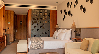 Suites feature resort, pool or ocean views and are located on floors 4 and 5. Additional amenities include a separate living area and a private plunge pool on the outdoor terrace.