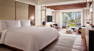 The elegant rooms and suites are set in low-rise buildings and integrate natural elements, such as river stone, marble, onyx, wood, and clay. Features include the renowned St. Regis Butler Service™, a private outdoor shower and Remède toiletries. Select suites have a few steps and may not be ideal for guests with mobility issues. Complimentary wireless internet access is offered throughout the resort.