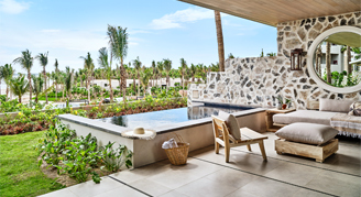 Suites feature two bedrooms with a separate living area, an ocean view and a plunge pool.
