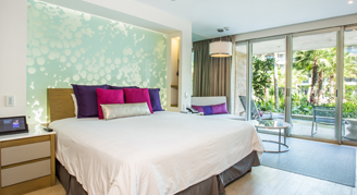Suites feature a tropical garden view. Additional amenities include direct access to a pool.