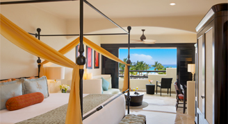Suites feature a partial-ocean view or an ocean view. Additional amenities include an outdoor soaking tub.