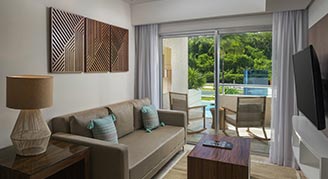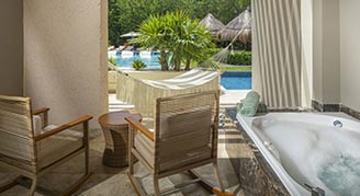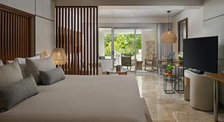 Suites feature a garden view or a pool view. Additional amenities include an outdoor jacuzzi and a soaking tub. This room category was formerly known as The Reserve Junior Suite Garden-View - All-Inclusive.