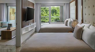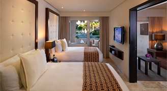 Suites feature a garden view or a pool view. Additional amenities include an outdoor jacuzzi, and a living and dining area. This room category was formerly known as The Reserve Suite Garden-View - All-Inclusive.