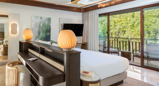 Rooms feature a garden view and are located on floors 1-4 in the Bambu Building adjacent to the lobby.
