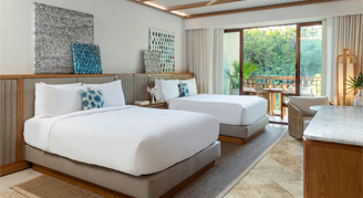 Suites feature a garden or lagoon view and are located in two-story buildings. Additional amenities include a separate living room, a second bathroom, butler service and a plunge pool on the outdoor terrace. Please note: Casita buildings do not have elevators.