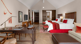 The elegant and spacious suites are furnished with contemporary Mexican décor, and feature a spa tub, a rain shower, a Nespresso machine, a pillow menu, and Molton Brown bath amenities. Select suites also feature a plunge pool on the terrace.