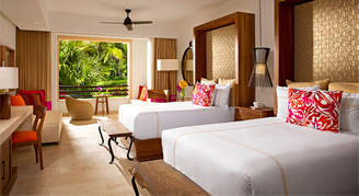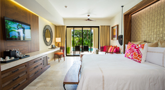 Spacious suites feature an elegant design, fresh interpretations of Mexican art, La Huasteca-style embroidery with Mayan gold accents, natural elements, and nature-inspired décor, which includes elements of water, wood, stone and fire. Select suites have direct access to a pool. Guests of the Preferred Club and Romance categories will enjoy additional amenities and services. Complimentary wireless internet access is offered throughout the resort.