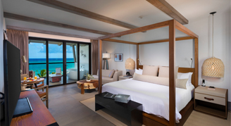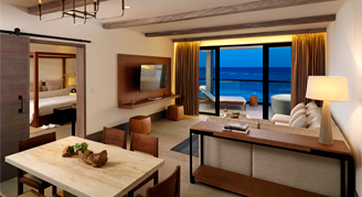 Suites feature a partial-ocean view or an ocean view. Additional amenities include a living area and dining area and two outdoor hydro spa tubs.
