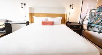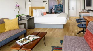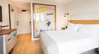 Immersed in a culture of creativity and surrounded by vibrant street art, experience life as a local at Hotel Indigo® Lower East Side New York. A custom mural by graffiti legend Lee Quiñones greets you as you enter the 14th-floor lobby; have your camera ready for spectacular 360-degree views of Manhattan too. On the rooftop, enjoy sweeping vistas while you sip a cocktail outside, dine at Mr. Purple or take a dip in the open-air, heated pool. The hotel's 294 rooms – including four luxury suites and a duplex penthouse suite – are urban oases with hardwood floors, spa-inspired showers, C.O. Bigelow bath amenities, Garnier Thiebaut linens and locally sourced mini-bars. Wake up refreshed and ready to discover the eclectic art, styles, flavors and sounds of the LES — just let the hotel's interactive touch-panel neighborhood guide point the way.