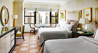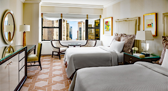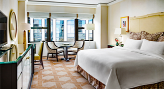 Rooms are located on floors 41 and higher, and feature a view of the Manhattan skyline. Additional amenities include a TV, a refrigerator, a daily complimentary newspaper, Egyptian cotton sheets and hypo-allergenic bedding.