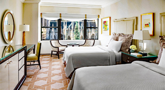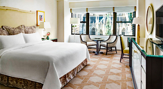Rooms feature a view of St. Patrick’s Cathedral and Rockefeller Center. Additional amenities include a desk, a TV, a safe and hypo-allergenic bedding.
