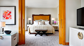 Suites feature a view from two directions. Additional amenities include a separate living area, a master bedroom with bedside touch-screen technology, a marble bathroom with a deep soaking tub and a glass shower, a guest powder room, a wet bar, and a butler’s pantry.