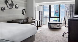 Rooms feature varying views of Times Square. Additional amenities include contemporary decor, ultra-plush bedding and a twin pull-out sofa bed or chaise lounge sleeper.