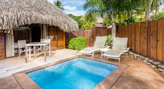 Bungalows are located in the gardens and feature a terrace. Additional amenities include a private plunge pool, a ceiling fan and one bathroom with a shower.
