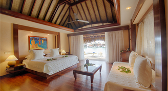Decorated in the purest Polynesian style, the hotel offers a wide range of accommodations from rooms overlooking the lush garden to overwater bungalows, including beach bungalows or garden bungalows with a private swimming pool! The Manava Beach Resort & Spa Moorea features two restaurants and a bar, the Manea Spa, a coral nursery, Polynesian entertainment, stand-up paddle boarding and a PADI dive center.