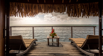 Bungalows feature a terrace, a view of the horizon and the sunset. Additional amenities include a ceiling fan, one bathroom with a shower, a glass window in the floor and a sundeck with direct access to the lagoon.