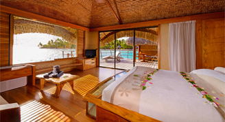Suites feature a preferred view of Taha'a, the Vanilla Island and offer direct access to the lagoon.
