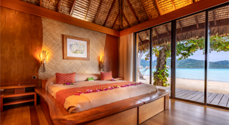 Suites feature a view of Taha’a and offer direct access to the lagoon. Additional amenities include optimum privacy, linen bathrobes, reef shoes and an iPod docking station.