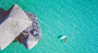 A member of the prestigious “Relais & Chateaux” collection, this luxurious resort features 12 beach villas, each with a private plunge pool and 45 overwater suites.