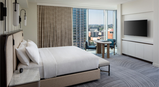 Blending urban sophistication with modern comforts, the 234 spacious rooms and suites feature premium amenities and floor-to-ceiling windows that offer spectacular views of Nashville’s vibrant cityscape.