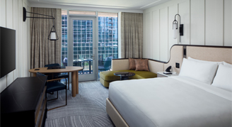 The 660 square-foot corner guest rooms exude contemporary luxury that you will find ideal for relaxing or re-energizing.