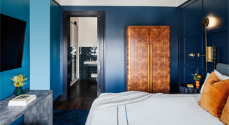Boasting views of 4th Avenue and an abundance of natural light, these suites feature a king bed, sitting area, art deco-inspired furnishings, and a spacious bathroom with double vanities. The wire-brushed, hand-turned spindle oak headboard with suede upholstery and a velvet sofa soften the guest experience.