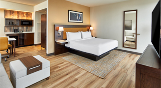 Relax in this one-room studio suite with one king bed and floor-to-ceiling windows. Furnishings include a pull-out sofa bed, microwave, refrigerator, 55-inch HDTV, hairdryer, steamer, in-room safe and a coffee maker.
