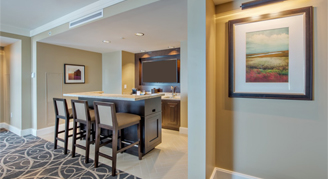 Spacious, accessible One-Bedroom Suites feature urban elegance with a Music City inspired touch - in the heart of Music City, and boast a separate living area with floor-to-ceiling views of the Nashville skyline on the top floors. Amenities include a fridge, in-room coffee, an oversized desk and a spacious bath.