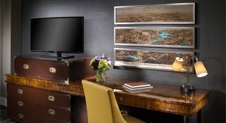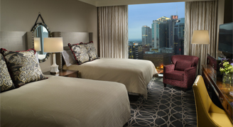 Rooms start at 408-square-feet and include one king or two queen beds, and a spacious bathroom. The luxurious floor plans feature floor-to-ceiling windows and warm colors that reflect the spirit of Music City. Rooms include a workstation, LCD HDTV, and contemporary furnishings with plush bedding. Bathrooms have a walk-in shower or tub, with a lighted vanity.