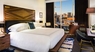 After an evening of live shows and exploring Nashville's amplified nightlife, unwind in the comforts of your room which offers a king bed with luxury Sferra linens, hardwood floors, and a refreshing rainfall shower.