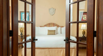 The stunning Mockingbird Suites are one-bedroom suites with a large living room and dining area, including a table for four. These suites also feature a spectacular view of the courtyard or the surrounding hill country, a walk-in closet, and a full bathroom with a bathtub and separate shower.