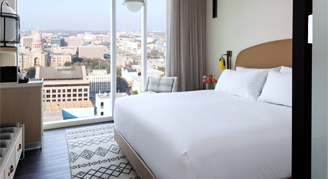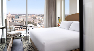 Take in the majestic Texas State Capitol building from the floor-to-ceiling windows of your corner room, and the neighborhood attractions in the streets below. Relax out in your cozy room featuring a king bed and a bathroom with walk-in shower.