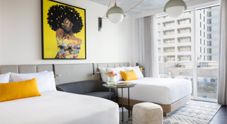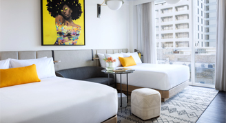 All rooms celebrate Austin’s status as the Live Music Capital of the World where you can relax in style with floor-to-ceiling windows and feel the exciting vibes of the neighborhood.