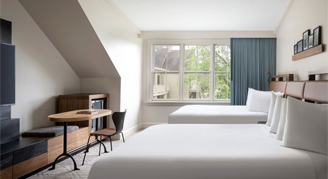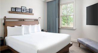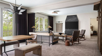 Offering 1,806 square feet of space in the south wing, the expansive Governors Suite boasts 20-foot vaulted ceilings, one king bed, a living room, a dining room, a library, and more.
