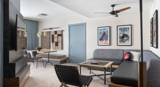 Stretch out in this 860-square-foot family-friendly suite located in the north wing. This room features an eating nook, a plush king bed, a queen sleeper sofa, and a queen Murphy bed. This suite also features floor-to-ceiling windows and regional artwork.