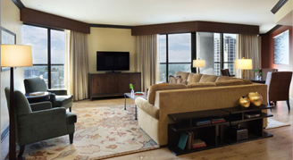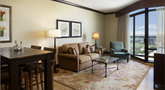 The Executive One-Bedroom Suites offer either a king or queen bed with traditional Texas décor, including a sitting area with a pull-out sleeper sofa, walk-in closets and a dining table with chairs. These suites provide a "home away from home" feel with a residential layout perfect for extended stays and gatherings in Austin.
