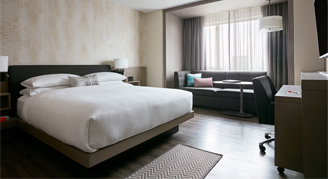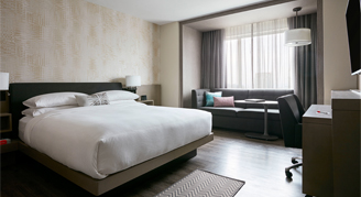 Rooms are located on higher floors and feature one king bed, a desk and a sitting area with a pull-out sofa. Additional amenities include access to the M Club Lounge, a chic and modern space to work, socialize or unwind, offering complimentary breakfast, afternoon refreshments and evening hors d’oeuvres and desserts.