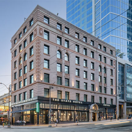 1501 2nd Ave, Seattle, WA, 98101, United StatesBuilt in 1904, this landmark building and its iconic location have been reinvented as The State Hotel, which lies in the heart of downtown Seattle and is steps away from Pike Place Market and Seattle's waterfront.