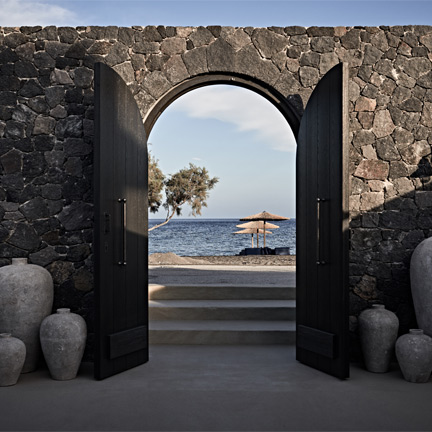 Perivolos - Santorini, 84703, GreeceAt the sublime junction where the black volcanic sand meets the midnight blue waters of the Aegean Sea, one finds Santorini’s newest addition, Istoria, a 12-suite retreat on Perivolos Beach.